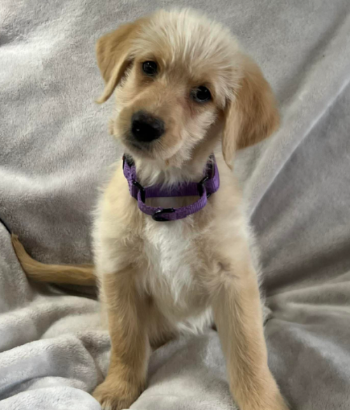 This 7–8 week old doodle mix is a feisty little girl with a big personality and no intention of being ignored. Monica makes her presence known wherever she goes, whether she’s charging through the snow, playing with dogs five times her size, or very clearly letting you know she is ready to eat. (She loves her food.)