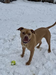 Opal delights in playing fetch with tennis balls and enjoys splashing around in water. She gets along well with other dogs, particularly confident and friendly male dogs, who can help her build trust.