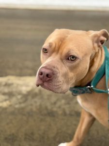 Estimated to be around 3-4 years old, Opal weighs approximately 60 pounds and boasts a moderate energy level, making her an ideal companion for those who prefer a relaxed pace. She’s housebroken, crate-trained, and views her crate as a cozy “safe space.”