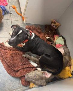 Parker gets a long with dogs and loves to play with his foster sister. Parker did live with kids in the past but he would do well with children over the age of 5. He’s very affectionate and sometimes is unaware of his bouncing. Parker is looking for his forever home where he gets all the attention and cuddles he deserves!