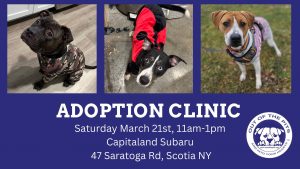 Come hang out with us at Capitaland Subaru in Scotia on Saturday, March 21st, from 11AM–1PM for an adoption clinic! We’ll have adorable adopt-a-bull dogs, plus a bake sale and OOTP merchandise to support our rescue—because nothing says “I love dogs” like buying cookies and a T-shirt. ![]()