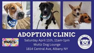 Join OOTP at Muttz Dog Lounge in Albany for an adoption clinic 4/11 from 11:00am-1:00pm!