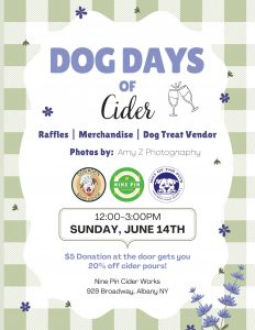Join us Sunday, June 14th from 12-3PM for a fundraising event with OOTP, Nine Pin Cider, Amy Z Photography and Dog Den Bake Shop.
