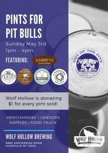 Come on out for our 3rd Annual Pints for Pit Bulls at Wolf Hollow Brewing Company on May 3rd from 1–4 PM! ![]()